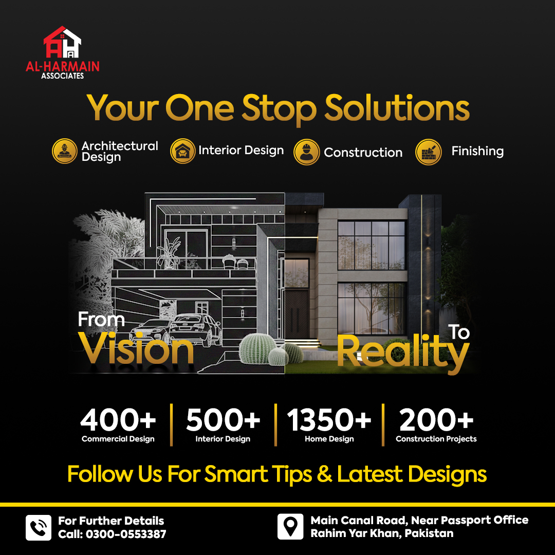 At Al-Harmain Associates, we design and build sustainable spaces with creativity, integrity, and precisionโenriching lives, protecting the environment, and setting new standards through trust and innovation.
